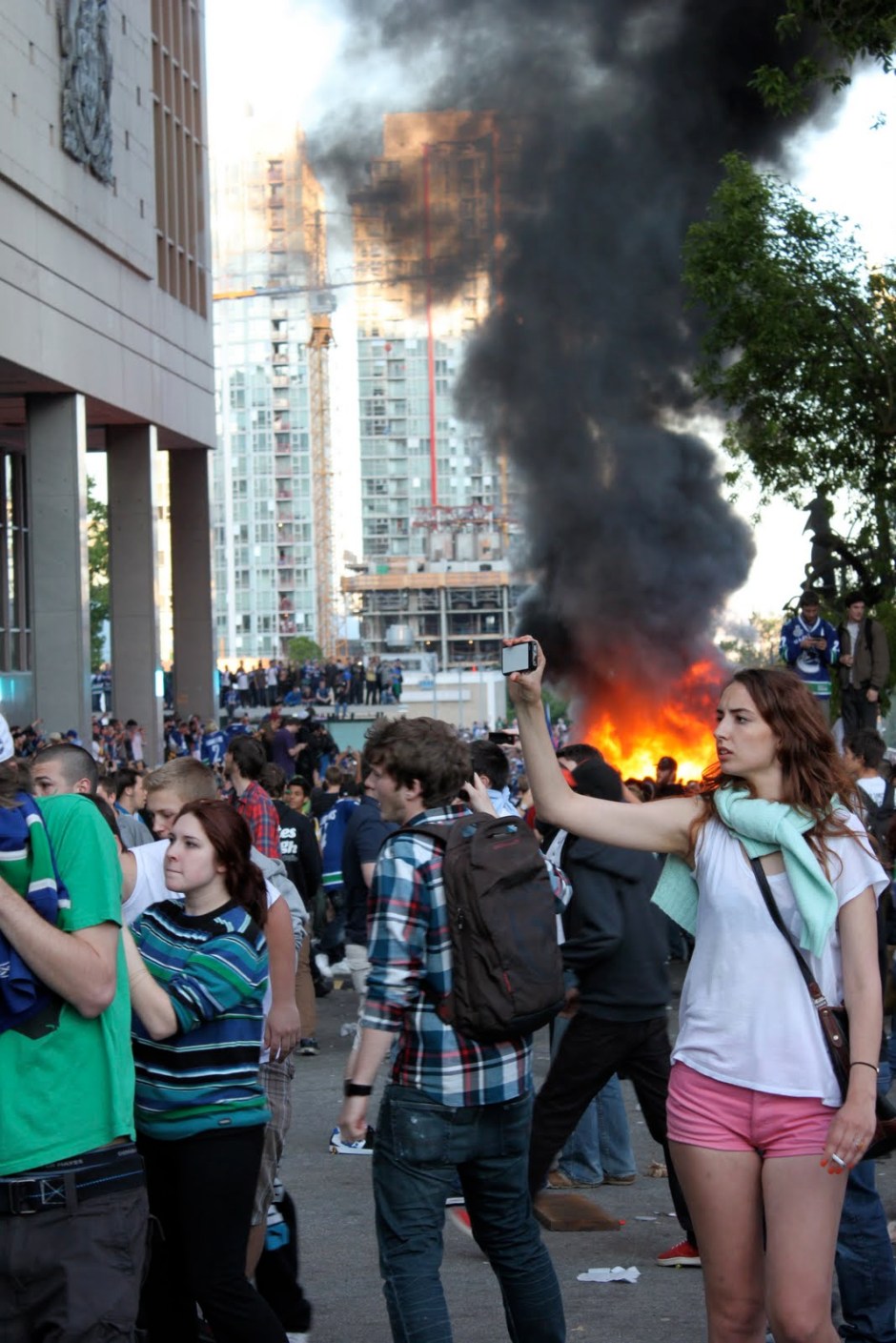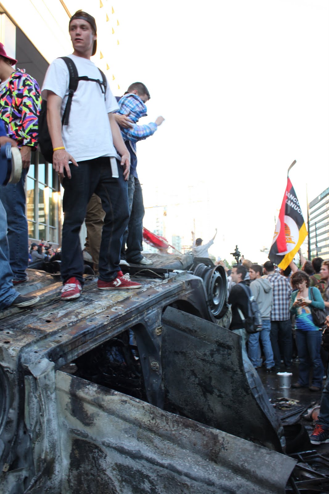 We arrived second, didn’t we? Isn’t this enough for us, Canucks? Yes, it was. But for an incomprehensible percentage of idiots, calling a riot in our beautiful streets seemed the plan for the night. After the main screen broke, a car got flipped, then burned. Black smoke ruined the air and rioters got hit by the flame; hit by the flame of destruction and mayhem. Cocktail bombs were thrown to the ground, and glass bottles were propelled in the air. Reactions arose amongst the crowd: fires, fights, screams, vomits, loots, blood. The perfect recipe for a nightmare in beautiful BC.