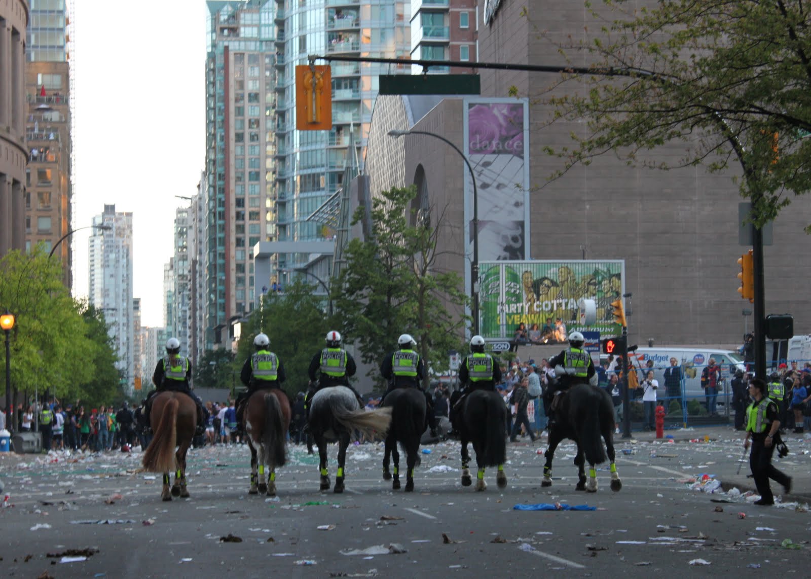 Currents of hundreds of fans were crashing one way, then the other. At some point, following the pod, I had no idea if I was running away from something, or running after something. The city was turned into a massive ocean infested with crazy Canucks.