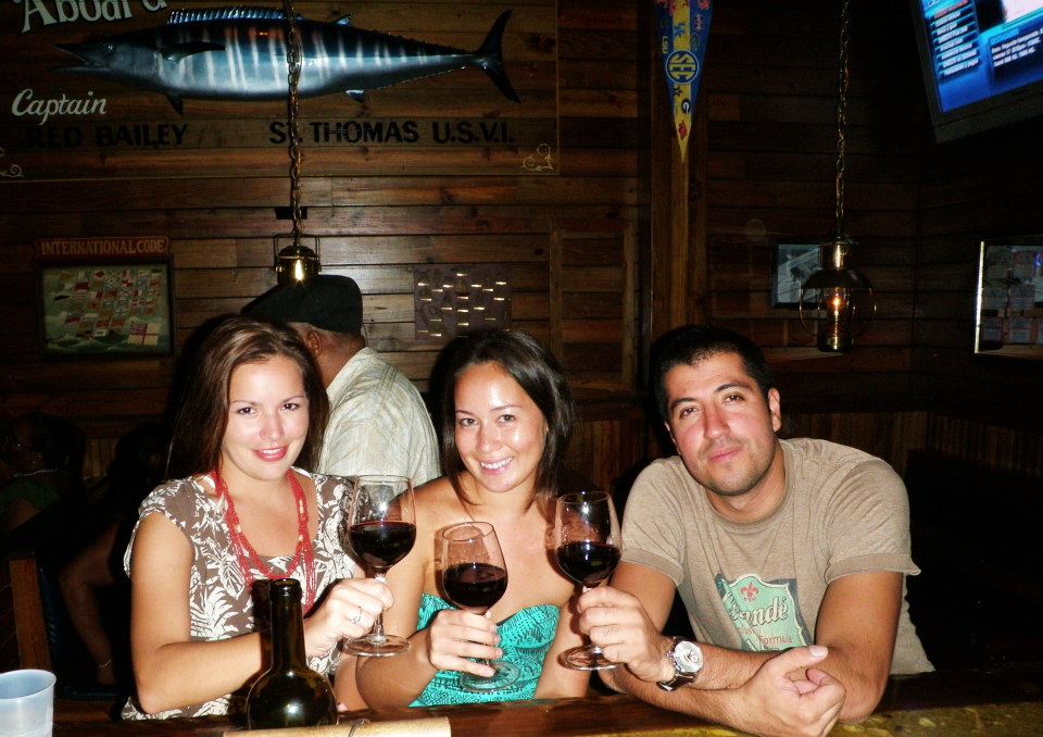 Before anything else, we need to cheers to our reunion with a refreshment. We stop at Hooters to try one of their famous cocktails. I choose the Tropical Rum Punch (of course I did), and am astonished by the quantity and quality of the 5 different local rums (yes, I did said 5) that this generously voluminous Hooters girl pours in my giant ”to go” cup (it is common to walk from bar to bar with a beverage purchased somewhere else. How convenient). The drink is tasty and is perfect to celebrate. We import our sippy cup to a local bar next door where we meet up with some of Sebastian’s friends. Again, to honor the moment, we cheers with a colossal shot of jager (it seems the smaller the island gets, the more the portions expand..)!