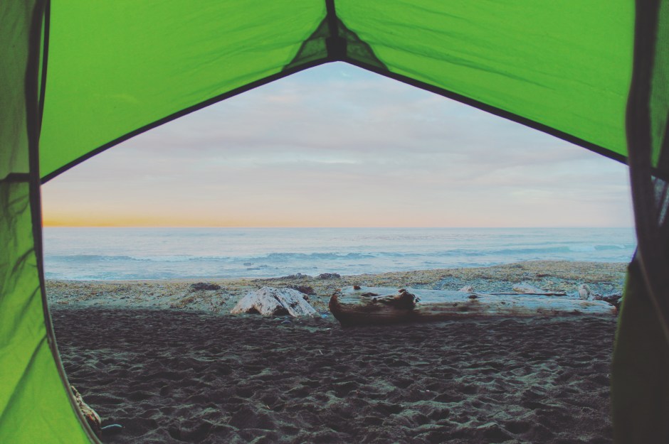 When we got to Trasher Cove, we set up camp on the beach, and watched the sun disappear behind the trees, leaving an orange glow over the ocean. As the sun dimmed its light, we called it a night.