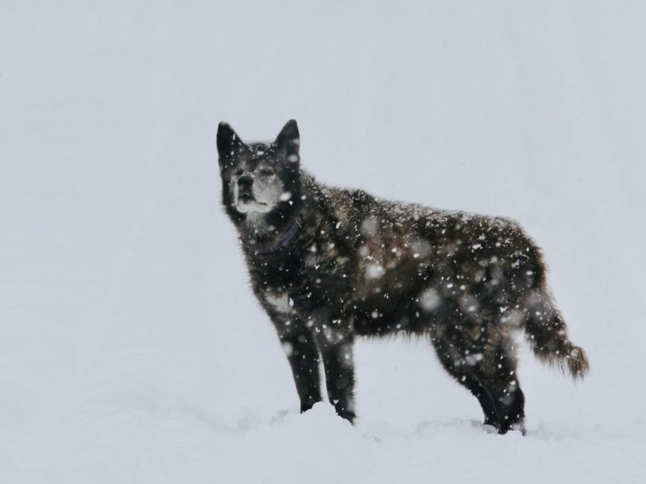 Sometimes I wondered if she was part wolf; her sharp gaze and stance hinted at something wild and untamed. She would pause on ridgelines, wind lifting her fur, and in those moments, I wondered if the mountains whispered to her to run free with the wolves. Who knows—maybe she was part of them. She belonged there—wild and free—as much a part of the mountains as the snow that blanketed them each winter.