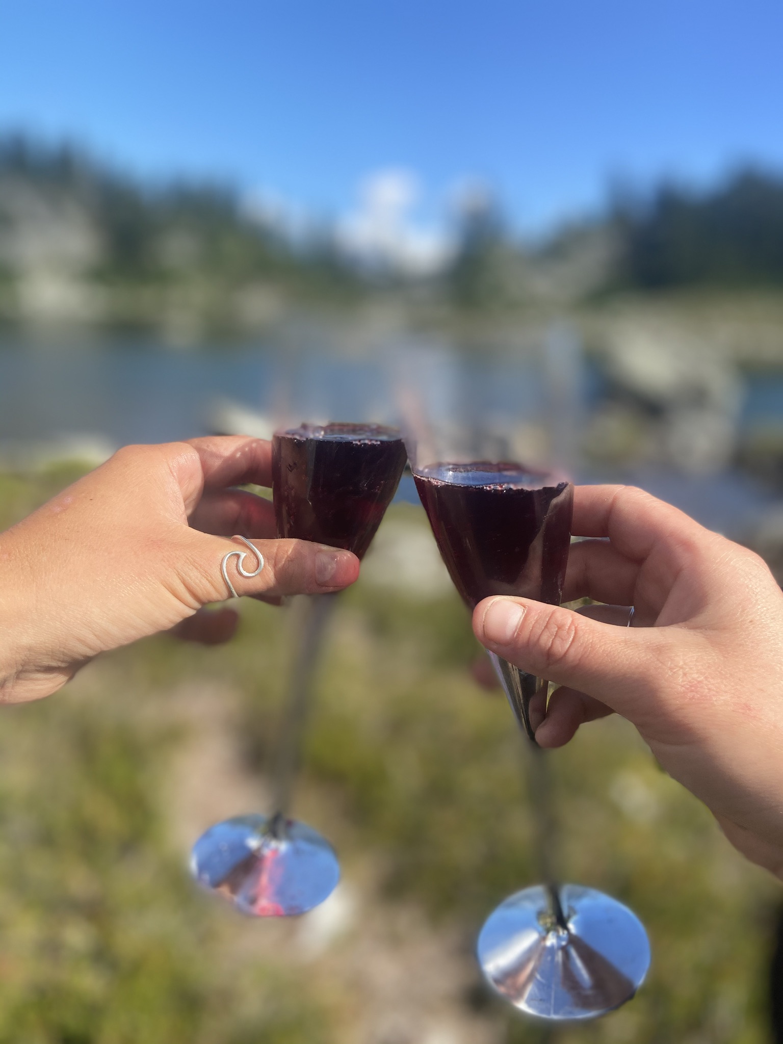 The trail opened up to the creek, that ran into the ocean. We walked through the fog, shuffling our tired and wet feet in the sand. Campers setting up their tent, warming up by a fire, and collecting water greeted us with a smile. It felt like a parallel universe, being alone all day in the wilderness and arriving to a place temporarily inhabited by humans. I grabbed my flask of maple whisky from my bag, and took off my shoes. I didn’t want to start a fire, set up the tent, get fresh water nor cook dinner. I wanted to admire that well-deserved sunset.